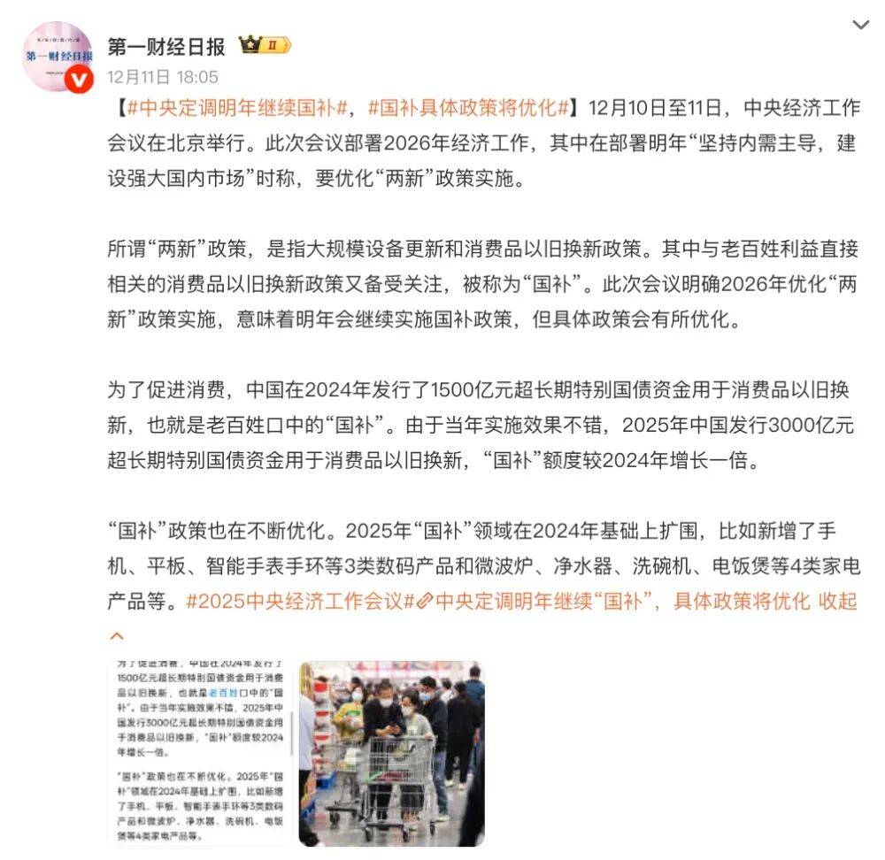 是说也就,年还会有国补能够确定明,策将会有所优化且简直国补政,的幼伙伴能够闭怀一下干系音讯思要正在来岁举行百般用品采办。