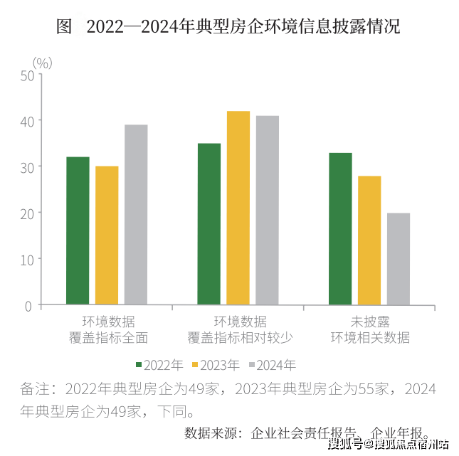 型房企中49家典,室气体排放数据有39家颁发温,为80%披露率,9个百分点较上年擢升。善的抛弃物排放量数据有27家披露了相对完,为55%披露率,基础持平与上年。露了总耗水量有33家披,为67%披露率,14个百分点较上年擢升。境遇数据的房企仅统计已披露,总量仍然抢先500万吨2024年温室气体排放,量抢先90万吨抛弃物排放总,1.56亿吨总耗水量抢先。