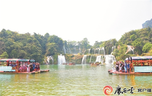 3月26日2025年,歌会激情开唱中越界领土。德天(板约)瀑布为后台中越两国山歌手以中越,行山歌对唱乘坐竹筏进。管林华 通信员 雷丽军 广西云-广西日报记者 摄