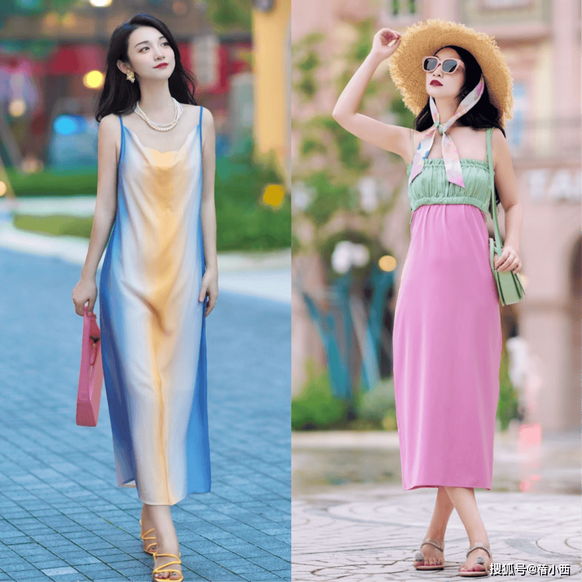 夸大若隐若现的性感“幼姨风穿搭”还,积的露肤而非大面。如比,吊带连衣裙穿上一条,和背部的肌肤轻轻露出肩膀,又迷人既时尚,双系带凉鞋脚下搭配一,感的气氛营造性,得过于袒露同时不会显。