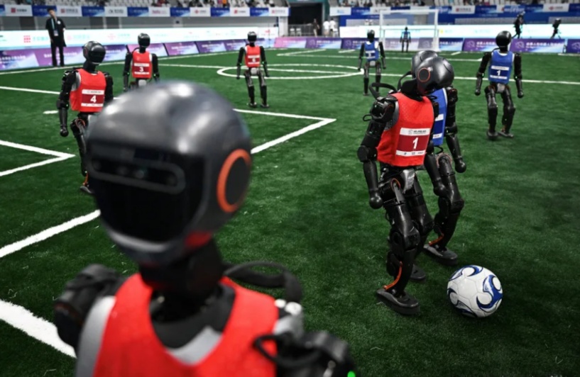年8 月2025,人形呆板人运动会上正在北京举办的首届,与“五人造”足球竞争呆板人“选手”们正参。:途透社(图源)